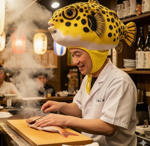 もじゃもじゃヘアーより魚くんの帽子かぶった方が目立つと思うんだけどな。