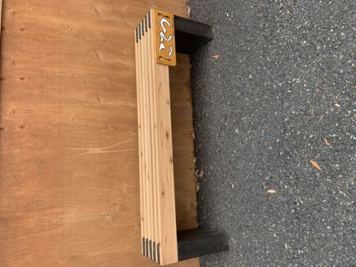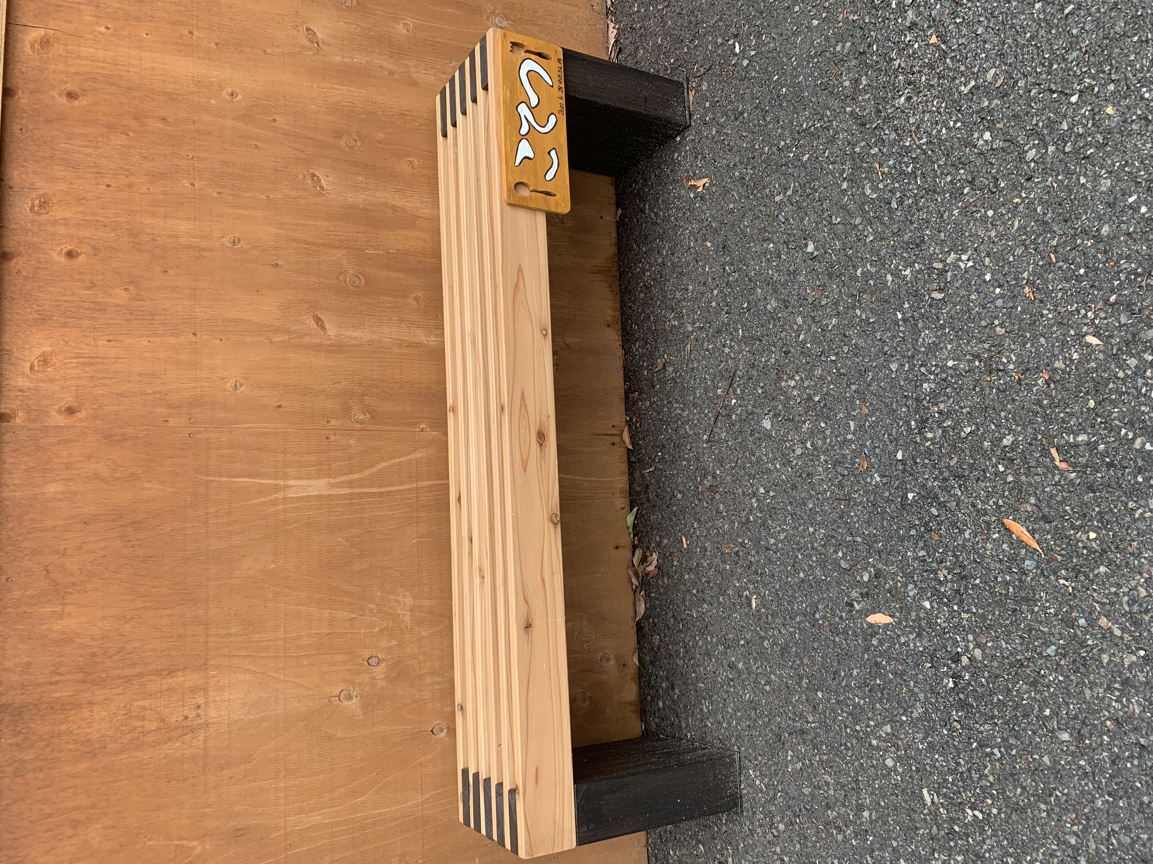 こてつ店外の喫煙所のベンチ。