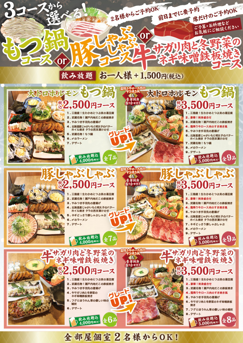 武蔵の冬の宴会コースがリニューアルのお知らせです。