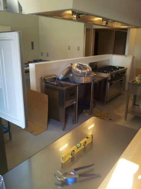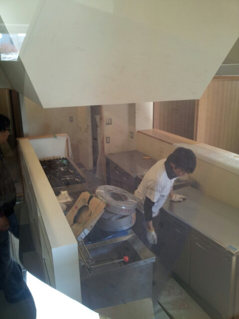 厨房機器搬入中。