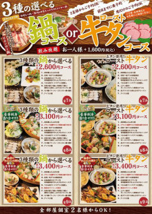 「選べる鍋コース」と「上タンを使用した。牛タンのロースト」のコース