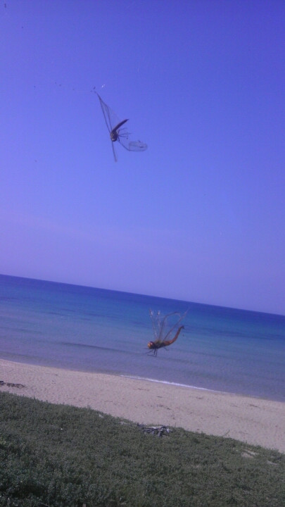 海に行くと、蜘蛛の巣にトンボがひっかかってます!
