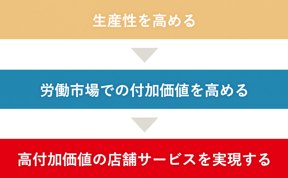 お客様への付加価値を追求することが、働くスタッフの生産性を高め、スタッフ自身の付加価値も高める。